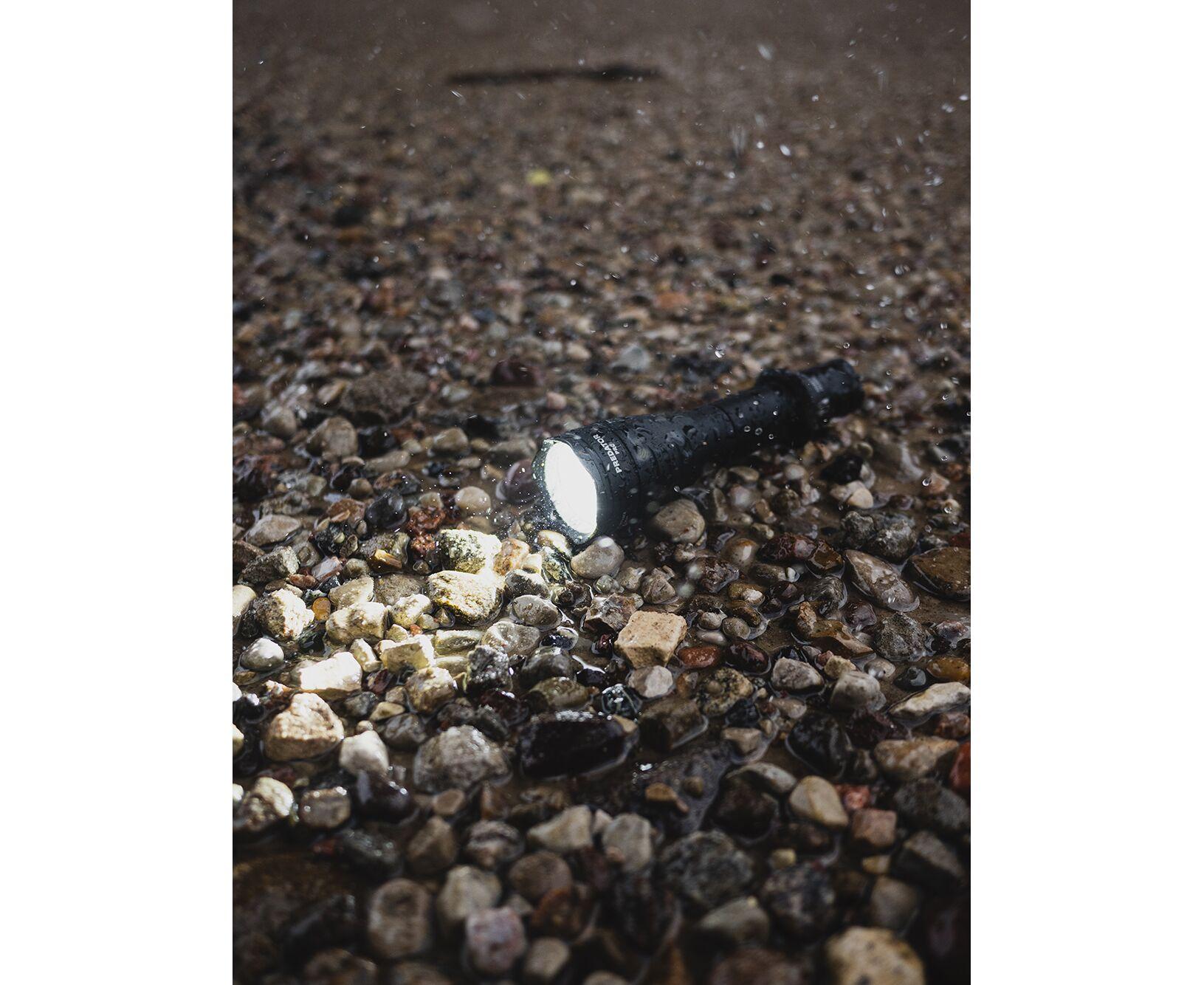 - Pełna ochrona przed wodą, brudem i kurzem zgodnie ze standardem IP68 — latarka działa dalej nawet na głębokości 25 metrów do 5 godzin. Wytrzymuje upadki z 10 piętra.