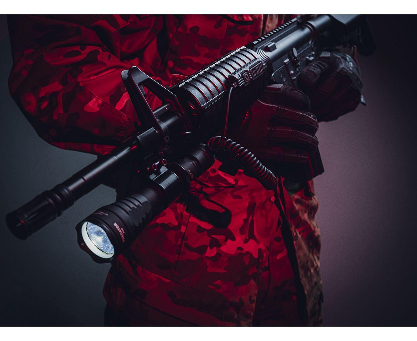 Silikonowy pierścień taktyczny, się cichy przycisk taktyczny w tylnej obudowie, kompatybilność z każdym uchwytem pod lufą, oryginalne włączniki żelowe i filtry kolorów: przemyślana do szczegółów konstrukcja gwarantuje maksymalnie komfortowe zastosowanie taktyczne.