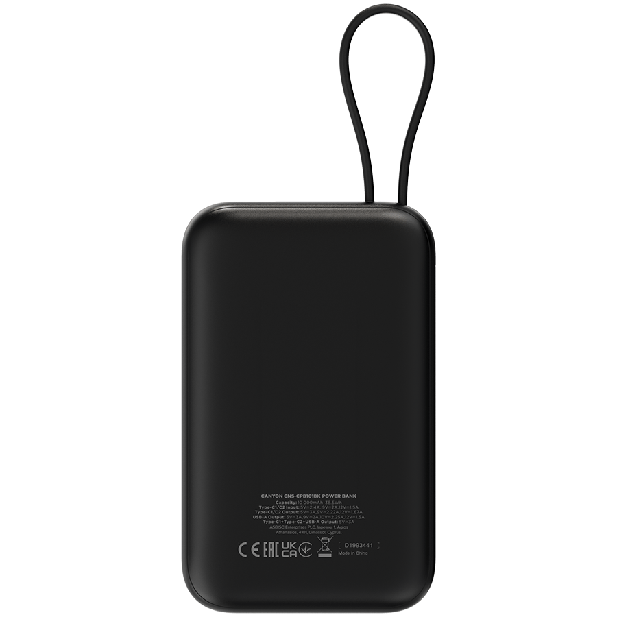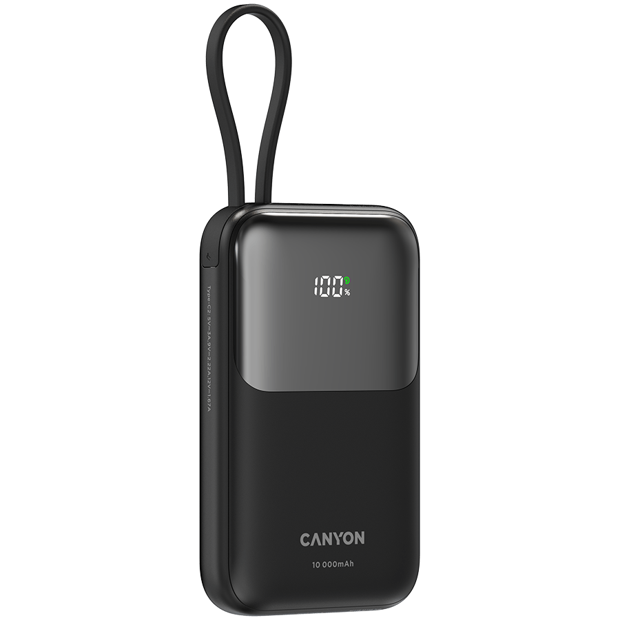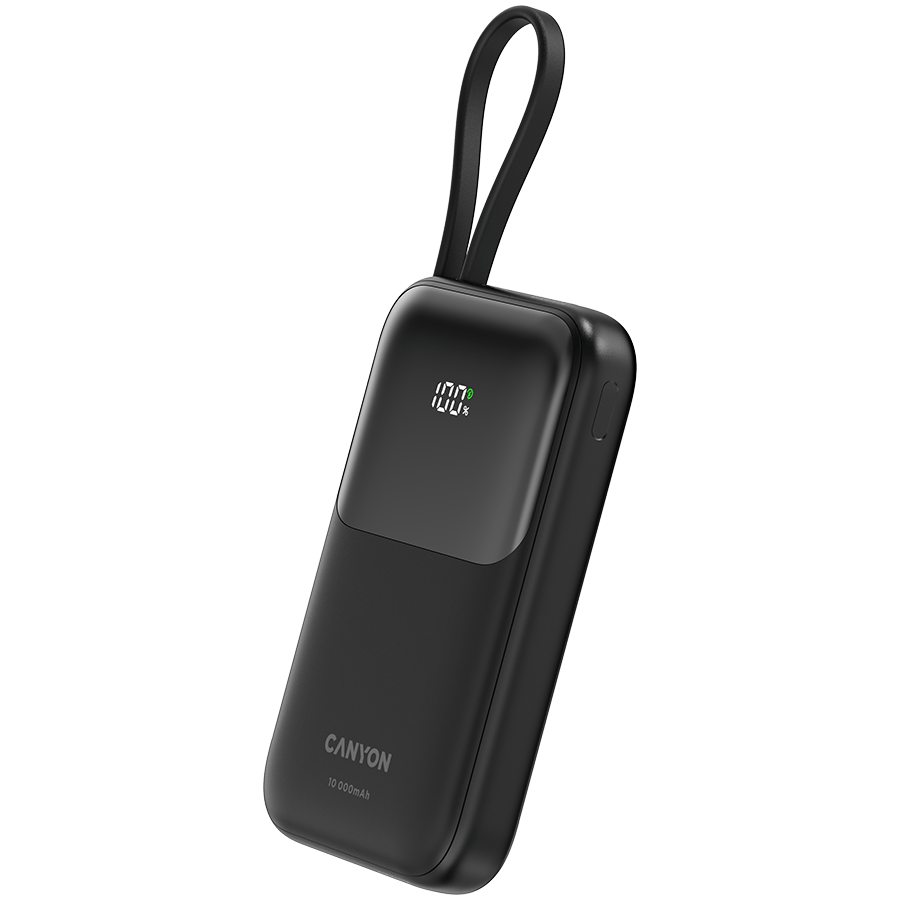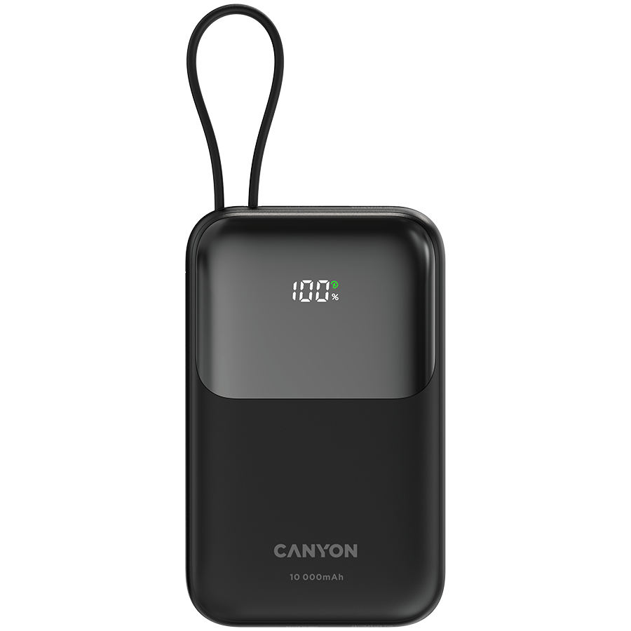 Power bank CANYON OnPower 101 wbudowany kabel 10000 mAh PD22.5W czarny