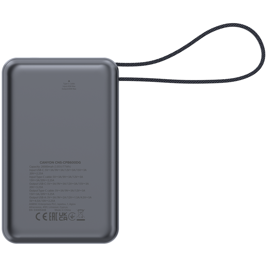 CANYON OnPower 600 to nowoczesny , mocny i uniwersalny powerbank dla osób, które mogą być odpowiedzialne za i ryzyko. Pojemność 20 000 mAh, superszybkie ładowanie 65 W, kabel, inteligentny wyświetlacz LCD i kompaktowe wymiary, które są idealnym towarzyszem na co dzień iw podróży.